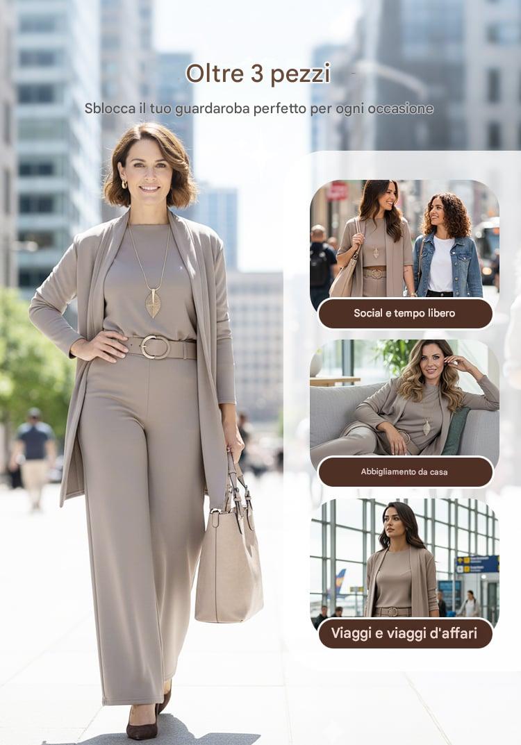 ⏳Offerta speciale a tempo limitato⏰Elegante set da 3 pezzi composto da un cardigan lungo, un top e pantaloni💞